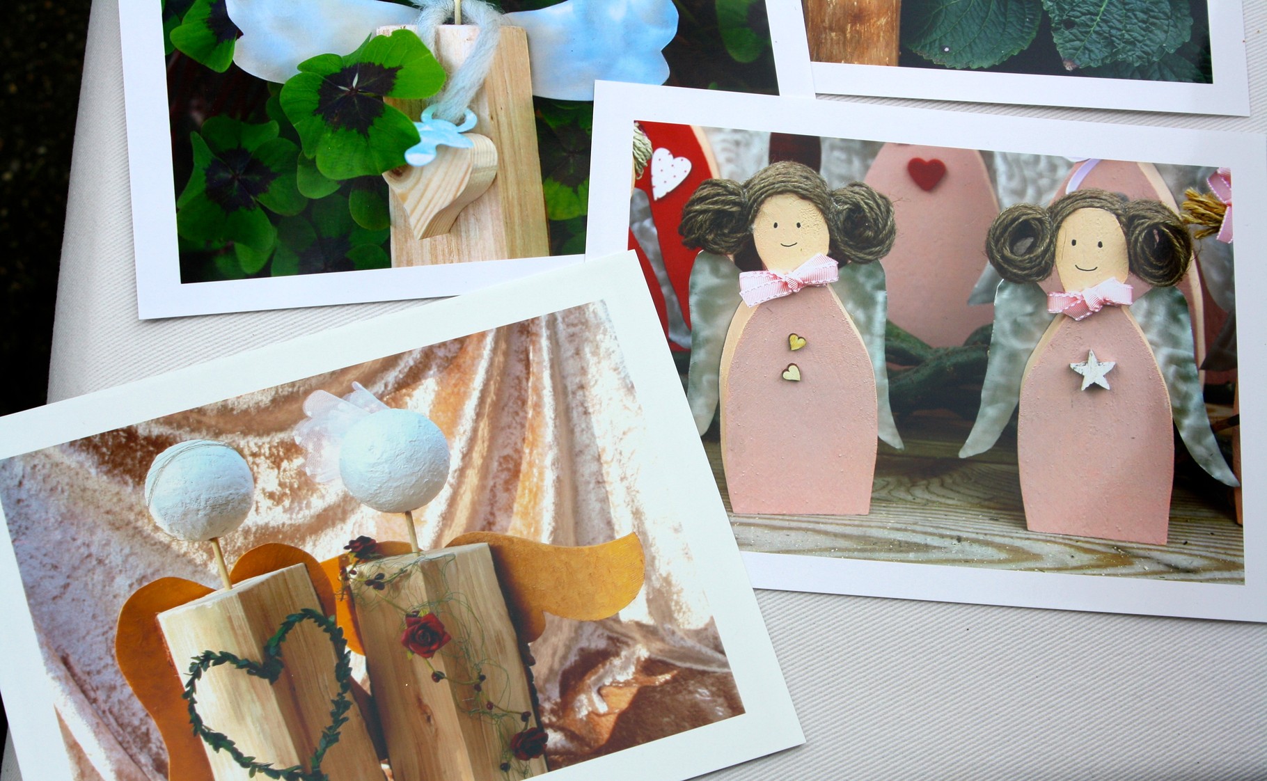 Meine Engel gibt es natürlich nicht nur als Figuren zum Hinstellen und Verschenken, sondern auch in praktischer "Form" zum Verschicken, Aufhängen oder Einkleben. Hier ein kleiner Vorgeschmack auf