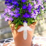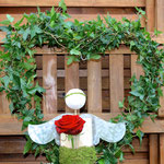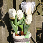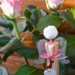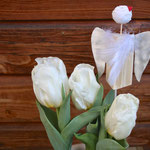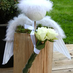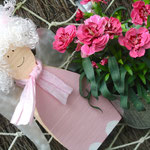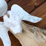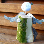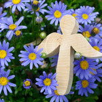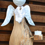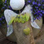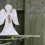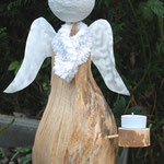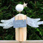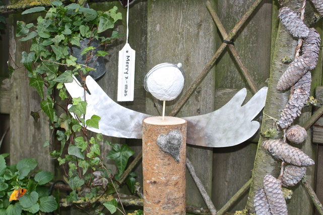 De engel van de maand juni is gemaakt van een schijf van een boom.