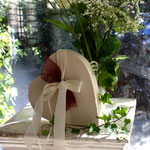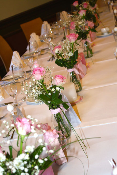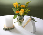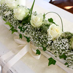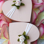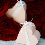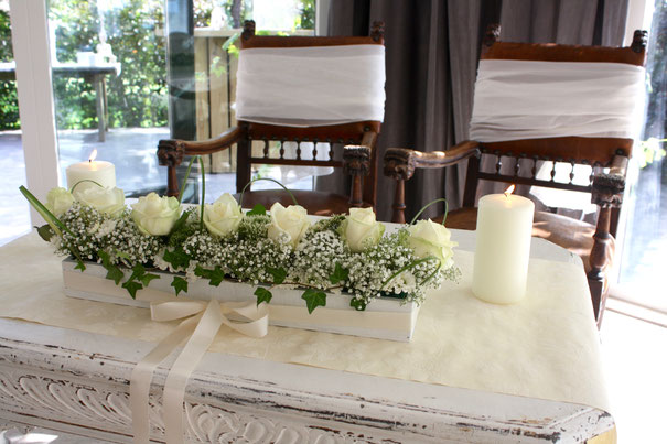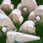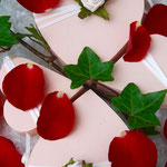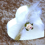 Witte rozen en hartjes voor een romantische bruiloft - een september feest zoals in de maand mei.