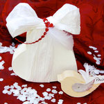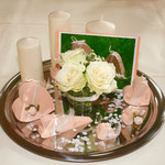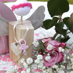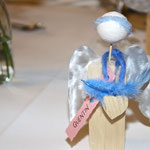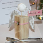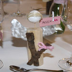 De tafelengeltjes met naambordje kan iedere gast meenemen - een mooie herinnering.