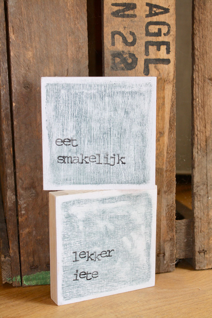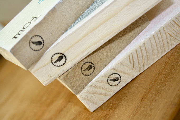 De letters worden gewoon in een mooie kleur direct op het hout gespempelt.